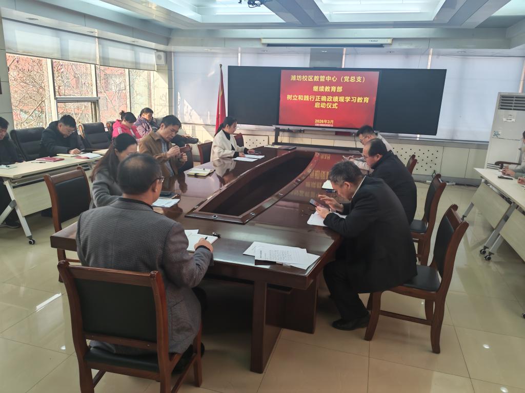 为深入贯彻落实学院关于在全院开展树立和践行正确政绩观学习教育的通知精神,紧扣立德树人根本任务,筑牢党员干部思想根基,扎实推进学习教育走深走实,3月12日,潍坊校区教管中心举行树立和践行正确政绩观学习教育启动仪式,部门全体教职工参会。